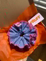 The cutest oversized scrunchie – handmade by me (Betsy) @ Fruff HQ (my dining room 😉).