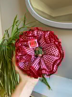 The cutest oversized scrunchie – handmade by me (Betsy) @ Fruff HQ (my dining room 😉).