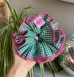 The cutest oversized scrunchie – handmade by me (Betsy) @ Fruff HQ (my dining room 😉).